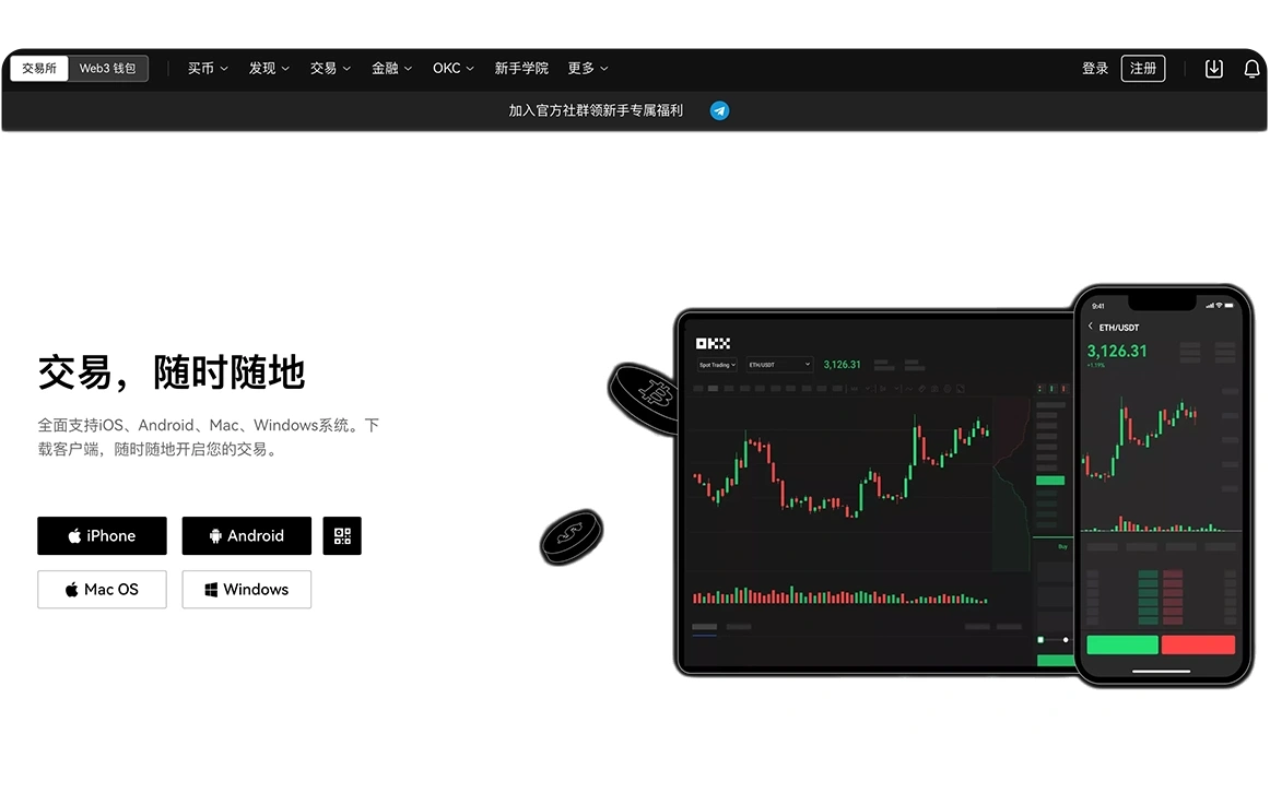 欧易APP官方版本适配iOS与安卓,可在应用商店下载,另提供Windows和Mac电脑客户端。